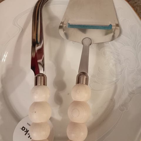 Juustoveitsi on 18cm, voiveitsi 16cm.
