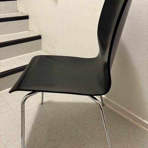 Kolme hyvässä kunnossa Piiroinen AND tuolia. Suunnittelija Antti Kotilainen. Musta, mänty näkyy sivuprofiilista. Aika siisti. Pinottava. Valmistettu Suomessa.