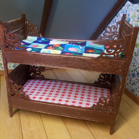 Nukkekotiin kerrossänky ja laatikosto