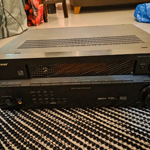 Pioneer vahvistin, jossa useita säätimiä äänen hallintaan. Laite on valmistettu metallista ja soveltuu äänentoistoon. Toimiva.