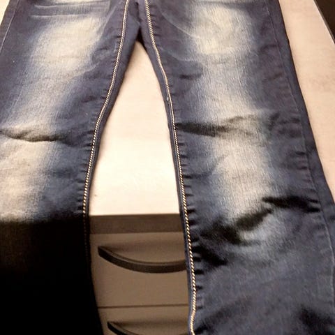 Todella kapeat ja matalavyötäröiset kurokone farkut, vaatii pesua koska eläintalos. Upeat; joko xs tai jopa xxs, koko lapussa lukee s mutta en usko.
