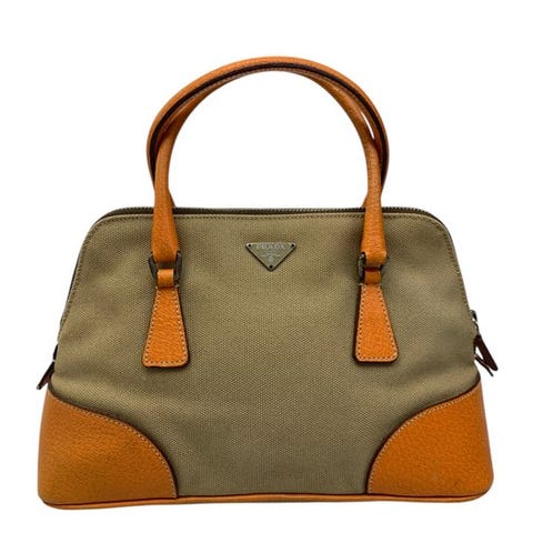 PRADA kaksisuuntainen olkalaukku ruskea kangasnahka kultainen Japanista.