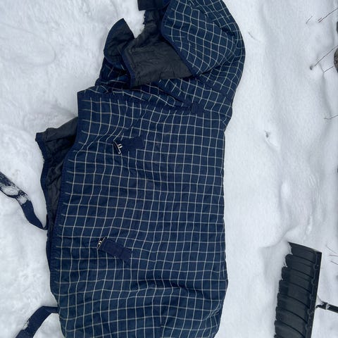 HKM merkkinen 150g sisäloimi karvavuorella. Päällinen sileää tikkikangasta ja sisävuori pehmeää karvaa. Koko 145cm mutta hiukan reilua kokoa. Mahavyöt pystyy irroittamaan. Muutama yö ollut päällä joten vuoressa valkoisia karvoja. Muuten ehjä ja siisti.