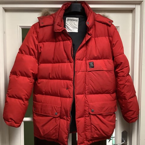 ka-ka noin 71 cm, pit 70 cm. Alkuperäinen huppu kadonnut. Mukaan saa hupun toisesta takista jonka voi sovittaa pusakkaan