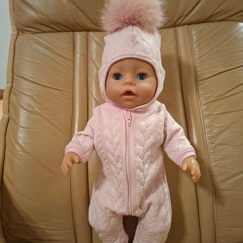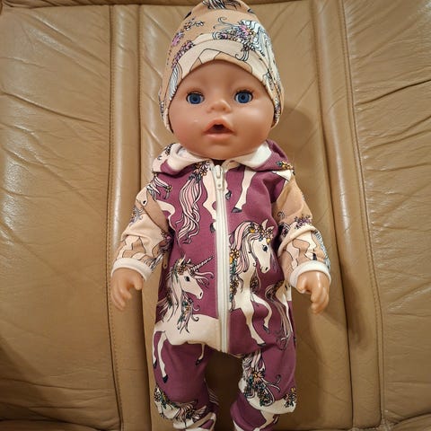 Ompelemani, uusi Baby born 43 cm haalari ja kypärämyssy tupsulla. Vaatteet ommeltu trikoosta tai joustocollegesta. Tupsun saa myös pois. Setti sisältää nuken päällä olevat vaatteet. Samoilla posteilla tulee useampi setti, (2–3 settiä). Löydät vaatteeni Lean Baby born 43 cm vaatesetit- nimellä. H 17 €+Toridiili. Nouto myös mahdollinen, Oulu.