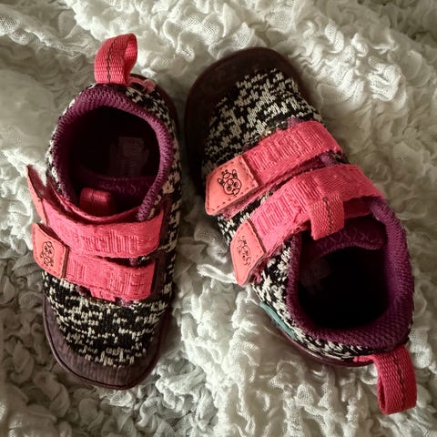 Tossumainen kenkä on helppo laittaa jalkaan, ja siinä on nauhat kiristystä varten. Kenkien takana on eläinaiheiset kangasmerkit, jotka helpottavat lasta pukemaan kengät oikeisiin jalkoihin. Kenkien pohjakuviointi antaa pitoa kengälle eri pohjilla kävellessä.