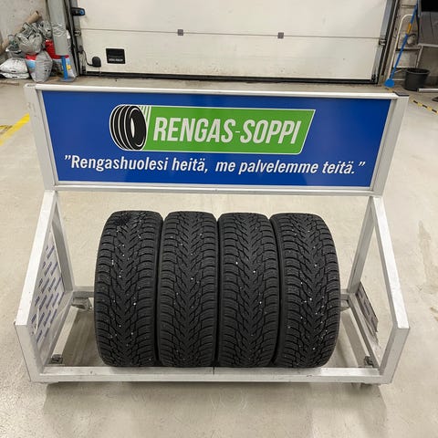 Nokian Hakkapeliitta R3 kitkarenkaat 195/55R16. Pintaa 5-6mm. Tasaisesti kuluneet.