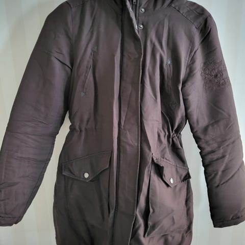 Tekoturkkismainen takki, hakas kiinnitys, kiiltävä karva.