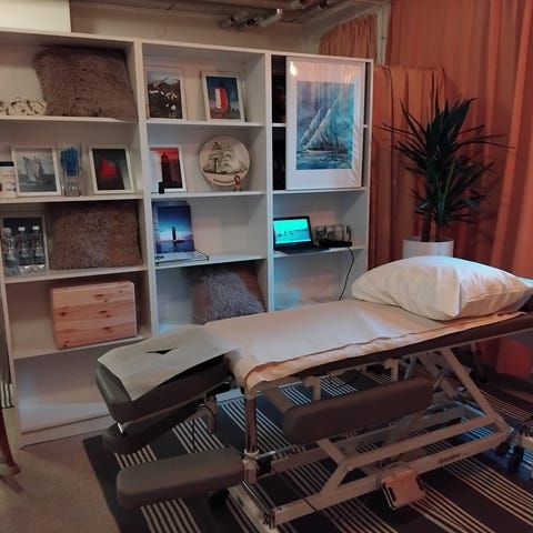 Vanha mutta toimiva sähköinen hierontapöytä.