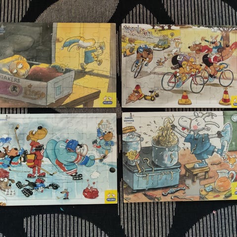 Pussissa useampi palapeli, kannet rikkoutuneet. Esim kuvissa olevat 2 kpl Muumiaiheisia. Eri tasoisia. Ei eläintalous ja vain nouto.