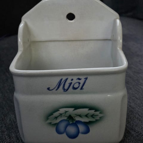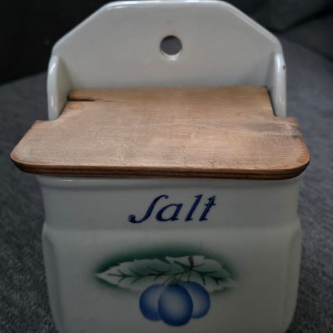 Myydään kaunis ja ikäisekseen hyväkuntoinen Arabian valmistama seinälle ripustettava suola-astia.