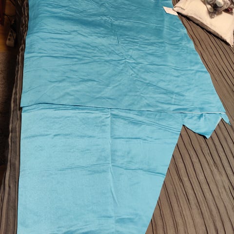 Tipunkeltaista verkkarikangasta. Liukas pinta, nukattu sisäpuoli. Joustaa pituussuuntaan.