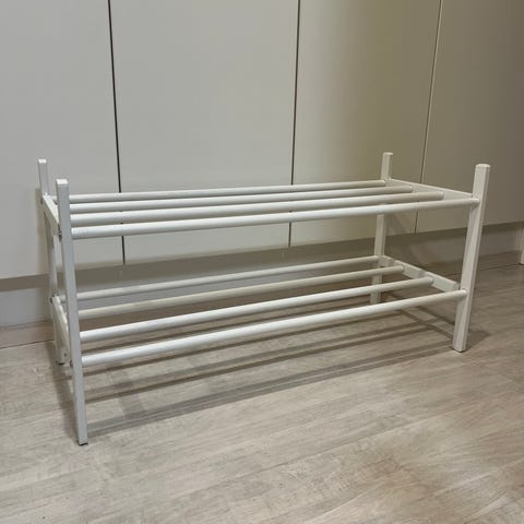 Kaksi ikean kenkähyllyä päälekkäin kiinnitettynä. Saa helposti irti toisistaan.