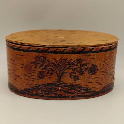 Kuvien vanha puurasia. Ulkomitat ovat noin 13×11×5 cm. Hyväkuntoinen!