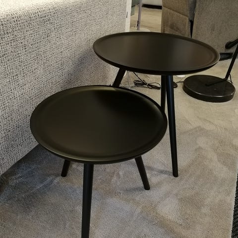 Vaalea sarjapöytä. Isompi pöytä 105x52x47, pienempi 45x42x42.