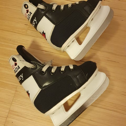 Viime talvena teroitettu ja yhden kerran luisteltu. Vissiin huonosti putsattu ennen varastoon vientiä kun teriin on tullut ruostetta.