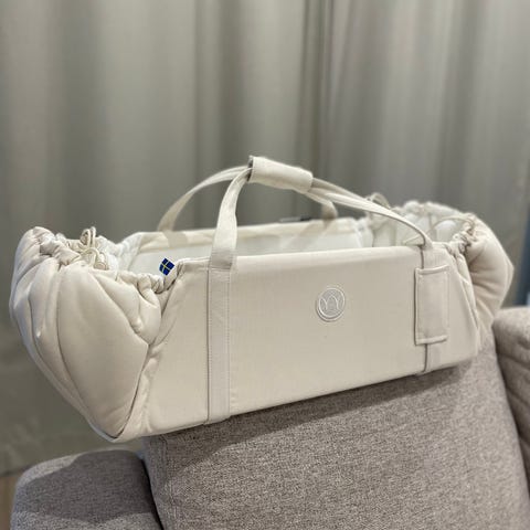 Kesällä -25 ostettu Najellin kantokassi/unipesä värissä Agave green.