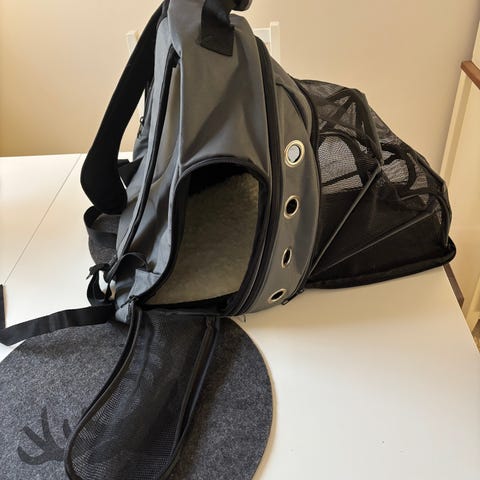 Reppu ostettu Zooplussasta, käytetty vain muutamia kertoja. Mukana sadesuoja.
