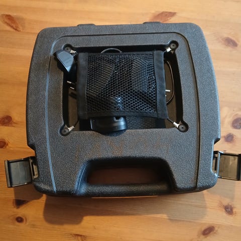 Käsikapula ja panta. Laturista puuttuu pikkuklipsi. Tämän saa varmasti hankittua.