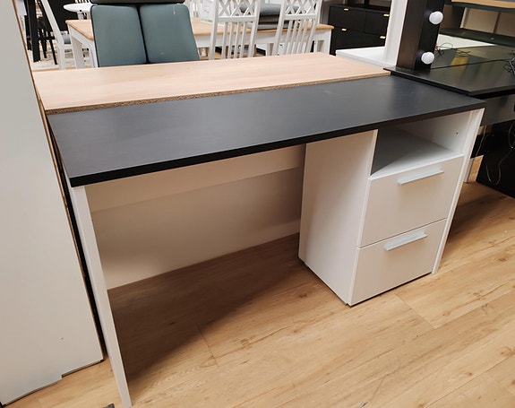 Nordic tammi tv-taso. Tasossa yksi leveä laatikko, avo-osa sekä kaappi. Ovi ja laatikko push open-mekanismilla.