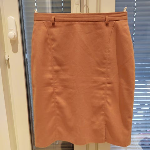 Kaunis vintage-henkinen vakosamettihame. Väri aikalailla oikeanlainen ekassa kuvassa. Varanapit paikoillaan. Vanhempaa H&M mallistoa. Vyötärön sisemmän pikkunapin ommel löystynyt. Sivutaskut. Oikein siisti ja hyväkuntoinen.