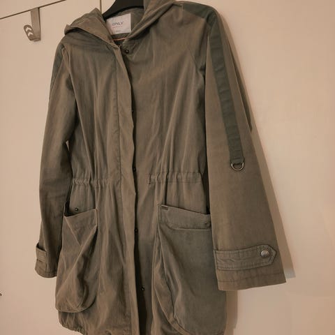 Hopean/harmaa ohut pitkä takki. Sopii hyvin välikauteen. Koko 34. Hyvässä kunnossa. Nouto hki malmi tai postilla.