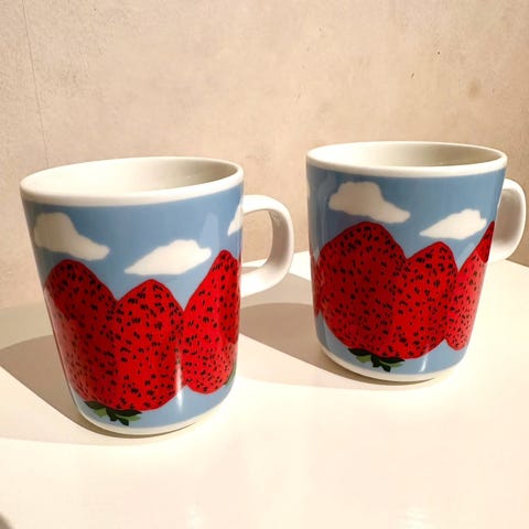 2 kpl uusia Marimekko Mansikkavuoret kulhoja koko 2,5 dl. Hinta yhteensä 32,00 euroa.