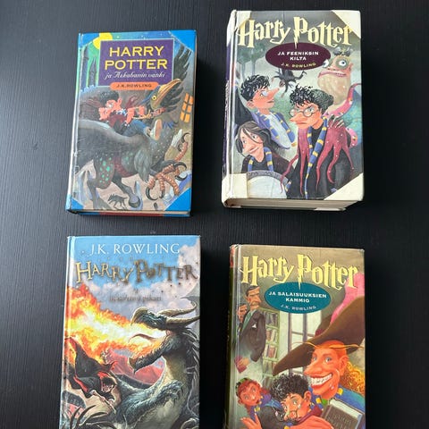 Seuraavalle eteenpäin kerralleen luetut kirjat sekä pokkarit. Silmämääräisesti hyvässä kunnossa. (Poikkeuksena Viisasten kivi, missä omistuskirjoitus)