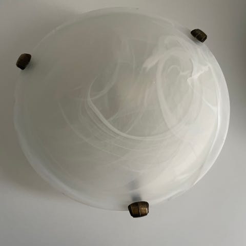 Sinivihreä plafondivalaisin. Halkaisija 40cm. Hieman maalia lähtenyt yhdestä kohtaa, tästä kuva.