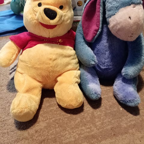 Hyväkuntoiset, vastapestyt reilu 50cm korkeat Nalle Puh ja Ihaa pehmolelut. Istuvat ilman tukea.