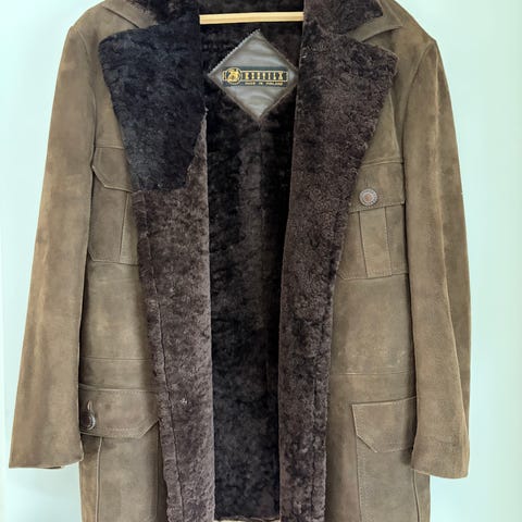 Tämä on 1940-50 luvulta (" kuin uusi") Tampereen Pukutehtaan valmistama hieno takki. Siinä on kultalammasvuori, napit/napinlävet nahkaa, priimakunnossa. Koko varmaankin n. 48-50?