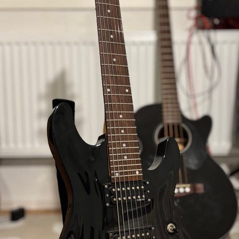 Raadosta koristeeksi rakennettu 70 luvun sg mallinen kitara.Made in Japan.Talla hieman vinossa ja sähköissä vähän tekemistä mut voi jotenkin myös soittaa.Näitä tehtiin Maya,Stagg yms.merkkisinä tästä ei varmaa tietoa.mikit ja tallat yms.uutta.mukaan myös orkkis mikit yms..