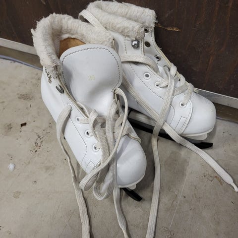 Annetaan luistimet. Kohtalainen kunto, mutta menisi vielä hyvin käytössä. Pohjallinen/ lesti kapea!