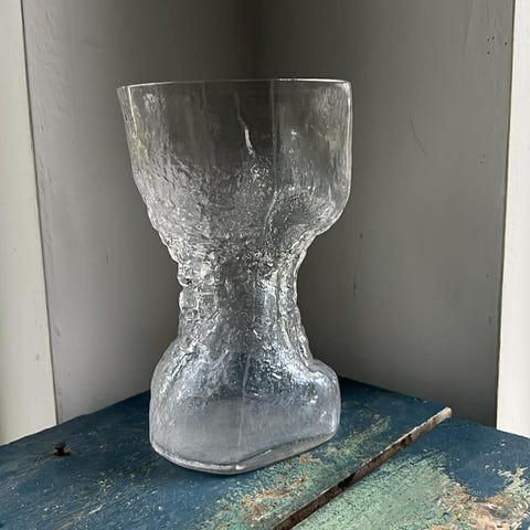Maljakko, tummansininen, korkeus 68 cm, ulkohalkaisija alhaalla 23 cm ja ylhäällä 12 cm. Ylhäällä sisähalkaisija on 9 cm.