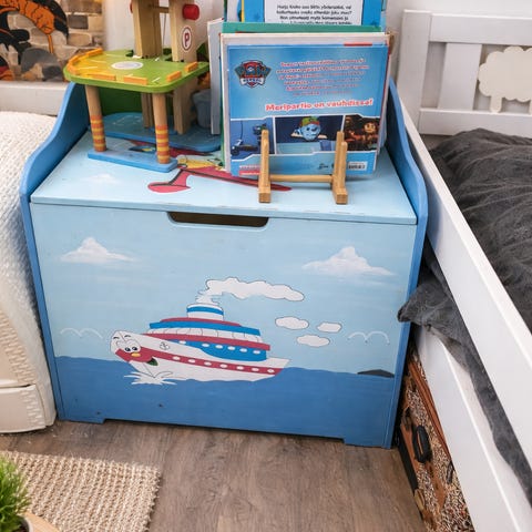 Vanha arkku joka ollut meillä lelulaatikkona. Kunto on hyvä, pientä jälkeä ja kulumaa on tullut käytössä.
