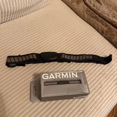 Myydään uusi ja käyttämätön Garmin HRM-Dual -sykemittari. Alkuperäinen pakkaus avattu vain kuvan ottamista varten – kaikki osat mukana: vyö, anturi, ruuvimeisseli ja ohjeet.