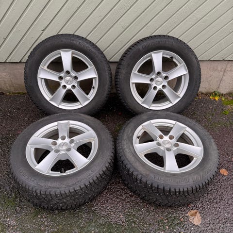 215/60-16" hyvät nastarenkaat 9-10mm VW/Seat 16" siistit vanteet.
