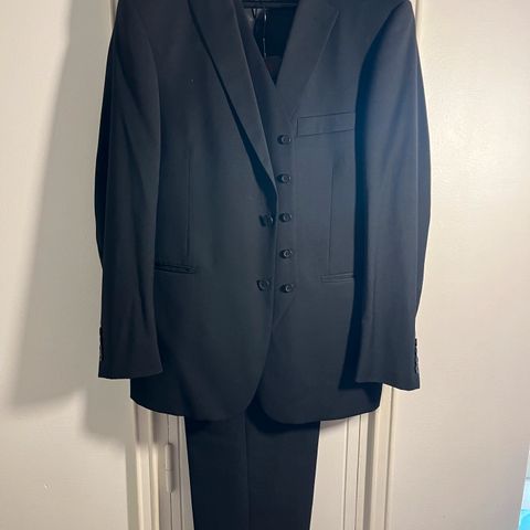 Myydään uutena ostettu dressmannin tummansininen Wool Stretch-puku.