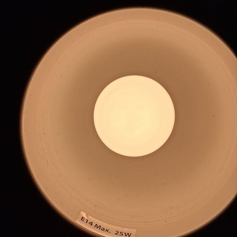Hyvässä kunnossa. Johdon pituus arviolta noin 50cm. Polttimo ei kuulu kauppaan.