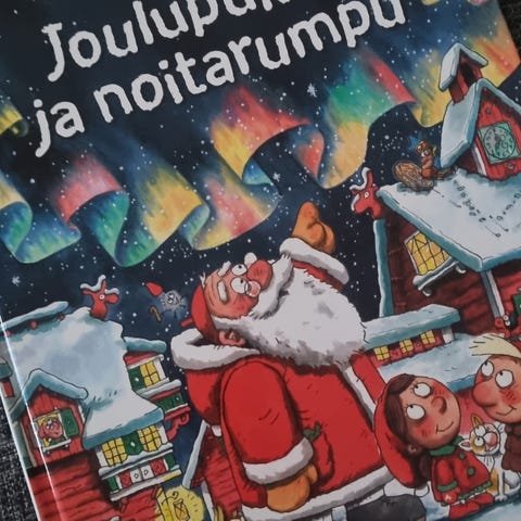 Mauri Kunnaksen Joulupukki ja noitarumpu. Kirjaa on luettu paljon, sivut ehjät, kirjan kansien alakulmissa paljon kulumaa, katso viimeinen kuva.