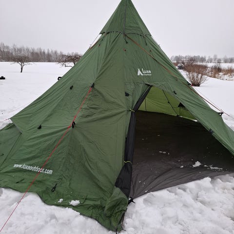 Talvikäyttöön kotateltta, mieluiten kamiinan piipun ulostuloreijällä.