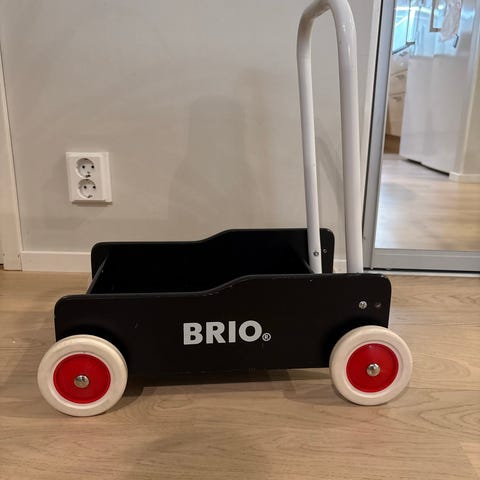 Brio kävelykärry. Jonkin verran kulumaa ja kolhuja (näkyvät kuvissa), mutta yleisilme edelleen siisti. Käytetty vain sisällä.