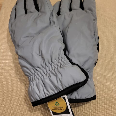 Myyntiin ylimääräisenä uudet ja lämpimät heijastinkäsineet. Käyttämättömät. Koko 11. Alkuperäiset laput ym. kiinni. Kämmenpuolella kumivahvike, rystypuoli kokonaan heijastavaa materiaalia. Lämpimät, talvi- ja ulkoilukäyttöön.