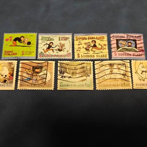 Kuva 2.mm leima Filatelian maailmannäyttely Helsinki 1988, Kolin maisema, Suomen lippu, 1985 joulumerkki, yms