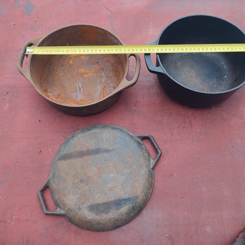 Kuvien mukainen ehjä pata. Ei kantta. Mitat näkyy kuvissa.