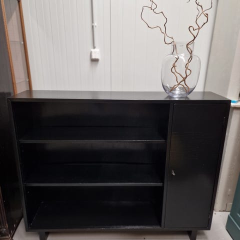 Kuvan siisti ja puuehjä kirjahylly. 118 cm leveä ja 163 korkea. Avain tallella ja lukko toimii. Kirjoituslevy tulee ulos pöytätason alta. Kaappi Kokkolassa nopeimmalle 250,- siivoushintaan
