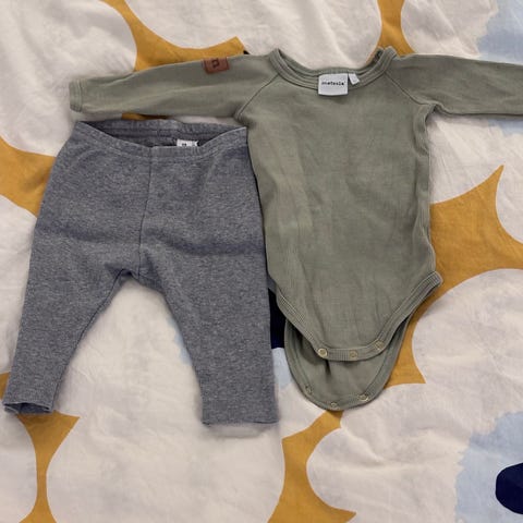 Metsola unisex vauvan vihreä body 62 ja housut harmaa 62/68