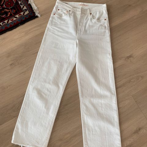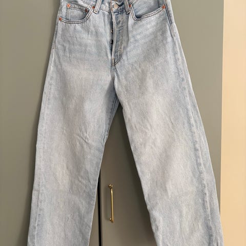 Myydään Levi’s Ribcage Straight farkut. Koko 23/27. Ostettu noin 5 v sitten ja olleet melko vähällä käytöllä. Vasemmassa lahkeessa kuvat mukaiset pienet jäljet, joita ei juurikaan huomaa käytössä.
