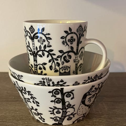 Iittalan Taika kulhoja 6 kappaletta, musta kuvioini. Vetoisuus 6dl, korkeus 7.5cm ja leveys 15cm. Täysin moitteettoman kuntoisia. Myydään kaikki 6 kerralla. Toimitus mielellään haettuna. Hinta yhteensä 90 euroa. Maksu käteisellä tai Mobile Pay.