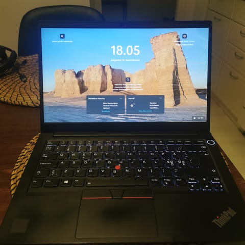 Lenovo kannettava tietokone sininen väri. Laite soveltuu yleiseen tietokoneen käyttöön